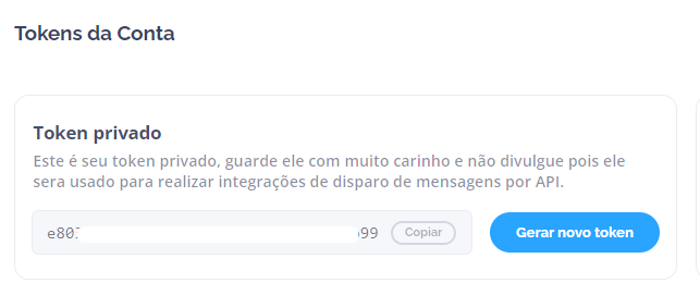 O token privado a ser utilizado pode ser obtido ao final da página de configurações da conta do Invenio Center: