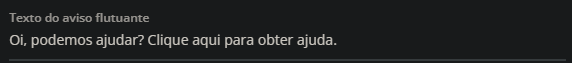 Texto do aviso flutuante: Mensagem a ser exibida assim que o WebChat é carregado.