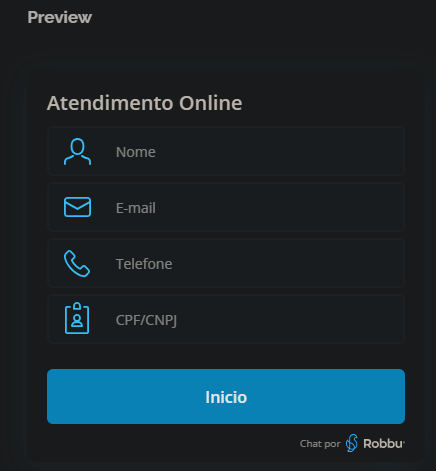 O texto do botão de chamada padrão é: “Iniciar atendimento”, mas caso o usuário queira especificar outro texto, basta utilizar a opção “call”.
