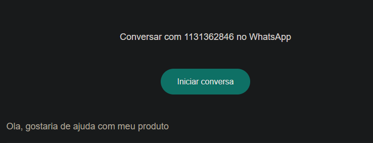 Mensagem padrão: Mensagem padrão a ser enviada quando o contato clicar no botão de WhatsApp: