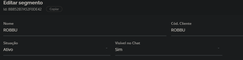 Obs: Para que o segmento esteja disponível é necessário que esteja “Visível no Chat” e possua valor em seu “cod.cliente”: