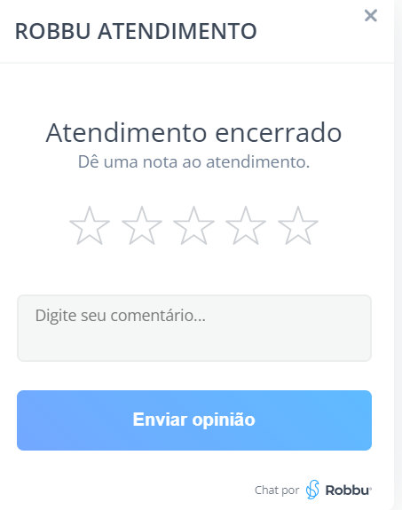 Feedback: Por padrão ao finalizar um atendimento será exibido no chat uma tela de feedback para o usuário. A exibição da tela de feedback não é obrigatória.