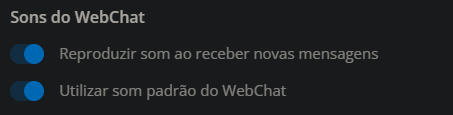 Agora na nova versão é possível definir se deseja ou não que notificações reproduzam som ao receber novas mensagens, caso o usuário não esteja com a aba que contém o WebChat aberta.