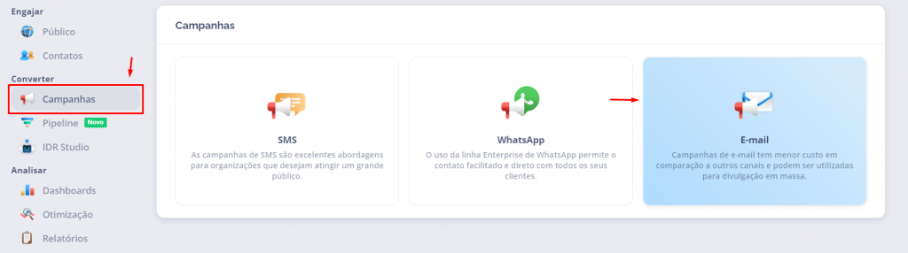 Para efetuar campanhas de e-mail com templates recorrentes, acesse o módulo de criação de campanhas de E-mail: