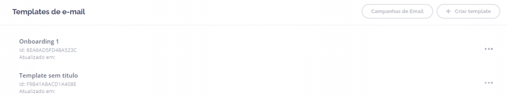 Nesta tela serão exibidos todos os templates já criados em seu ambiente, além da opção para criação de um novo: