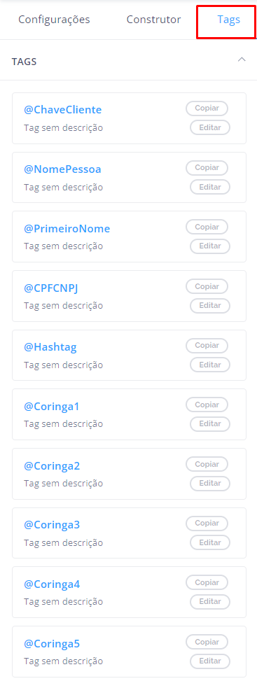 Para utilizar campos variáveis consulte as possibilidades na opção ‘Tags’: