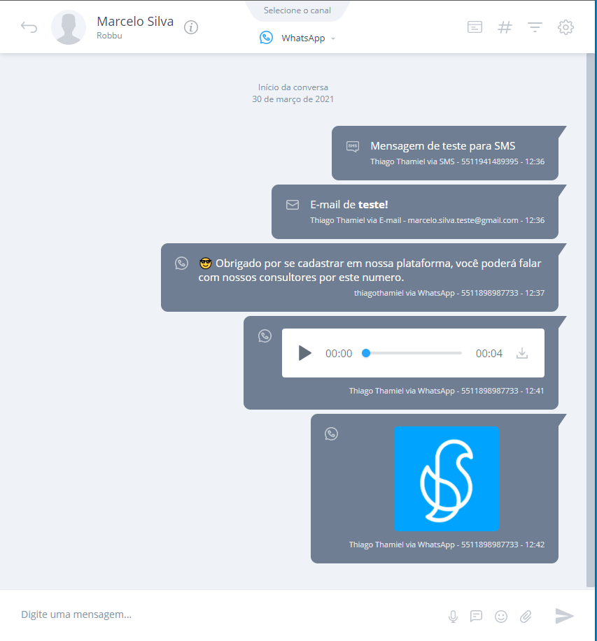 Você pode enviar mensagens de texto, áudio, mídias e mensagens de template HSM.