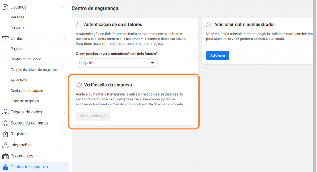 Para ativar seu número oficial de WhatsApp utilizando um provedor autorizado, precisamos que você crie uma conta no Gerenciador de Negócios do Facebook, proprietário do WhatsApp, e verifique a sua conta. Desta maneira, o WhatsApp irá garantir que sua empresa existe, evitando fraudes em seu nome ou de outras empresas. Esta etapa poderá ser útil no futuro caso você utilize outros produtos do Facebook em nome da sua empresa. Sugerimos que você crie e verifique seu negócio o quanto antes. Fique tranquilo, pois este procedimento é gratuito, não sendo necessário um cartão de crédito.