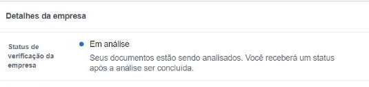 A sua conta provavelmente ficará em análise durante alguns dias. A equipe do Facebook irá comprovar que a sua empresa de fato existe e que os documentos que você enviou garantem que você é um dos responsáveis por ela.