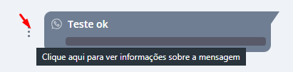 Em qualquer conversa efetuada via Invenio Live, é possível analisar o status das mensagens clicando nos três pontos à esquerda do texto enviado: