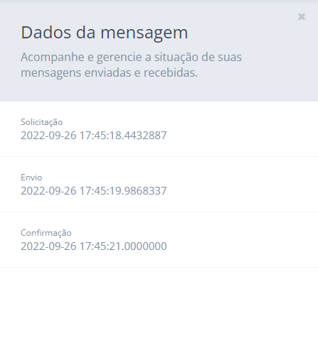 - Confirmação (quando disponível): Data/Hora em que a mensagem foi entregue ao destinatário.