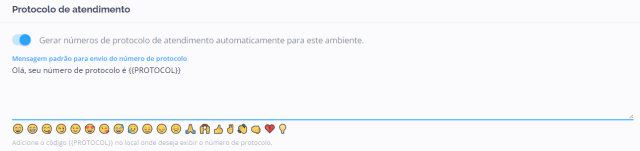 Lembre-se de utilizar a variável {{PROTOCOL}} caso queira mencionar o número ao contato nesta mensagem.