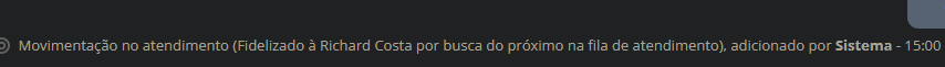 Obs.: Em casos em que houver o preditivo ativo, irá aparecer um registro de sistema informando que o contato foi fidelizado pela distribuição automática: