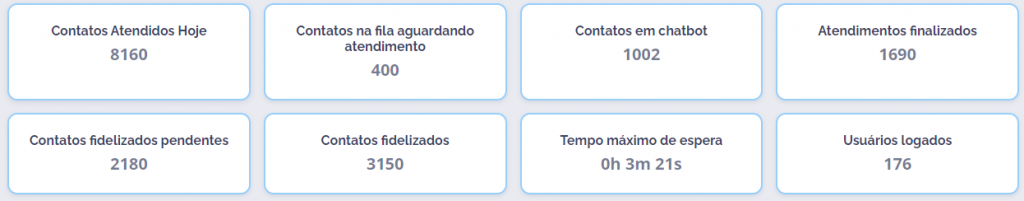 | Contatos fidelizados | São todos os contatos fidelizados com os usuários, independente se tem ou não mensagens pendentes de resposta. |