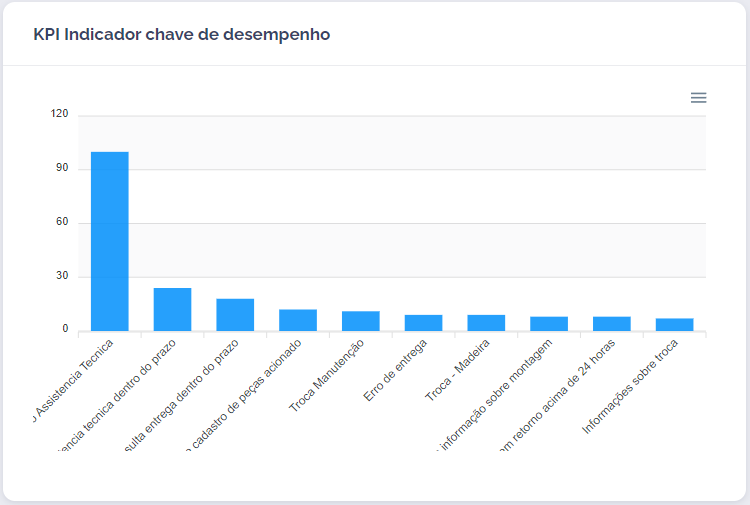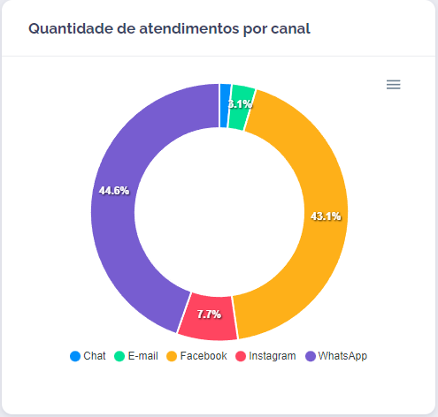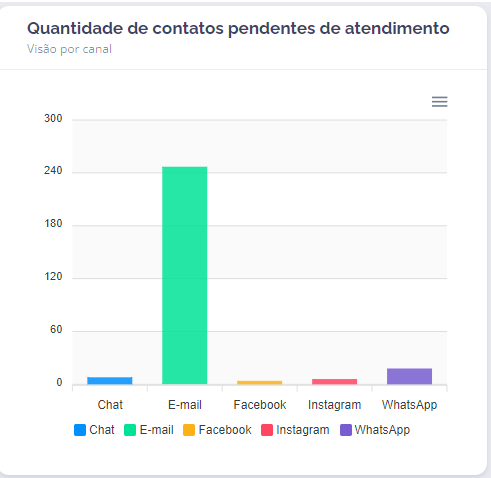 - Este gráfico é exibido em barras, agrupado por canais de atendimento.