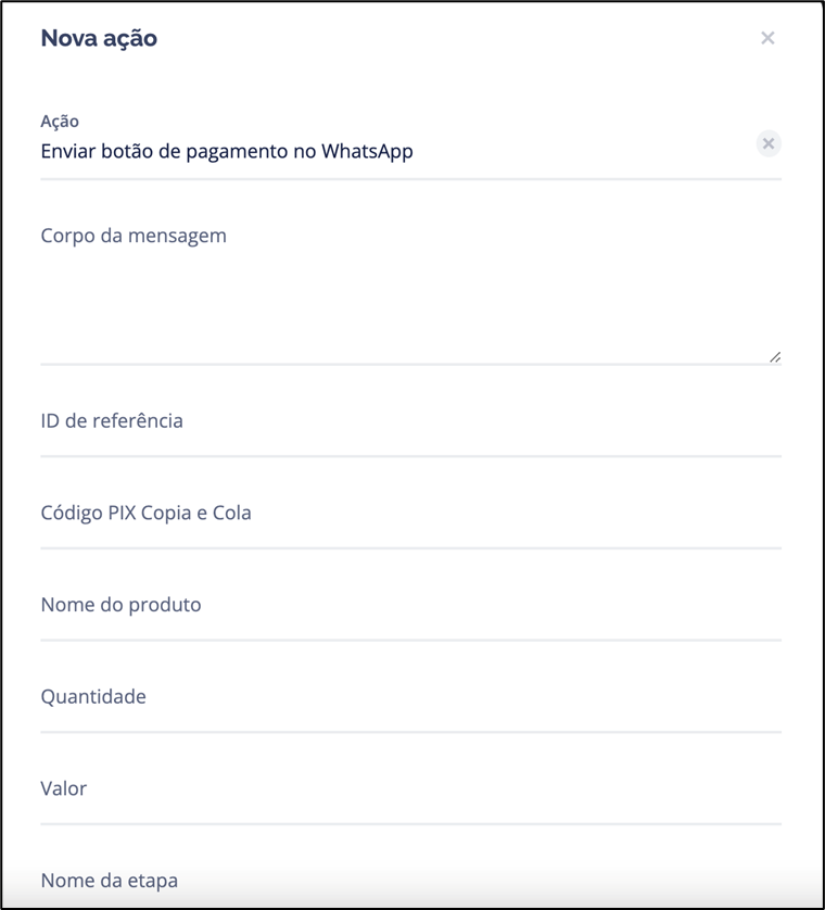 Para isto será necessário utilizar uma ação específica na sua IDR. Ela se chama: “Enviar botão de pagamento no WhatsApp”.