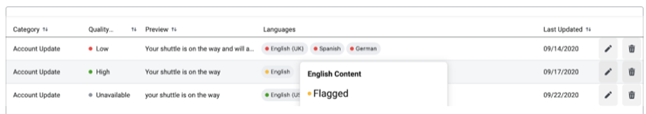 A classificação de qualidade mostra como as mensagens do seu modelo foram recebidas por seus clientes nas últimas 24 horas após o envio (janela de 24h). Existem três estados diferentes: