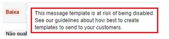 Quando um template está com a qualidade baixa, o Facebook pode excluí-lo sem aviso prévio ou justificativas.