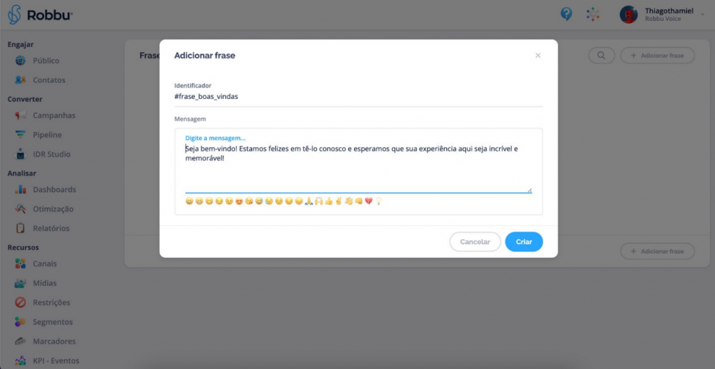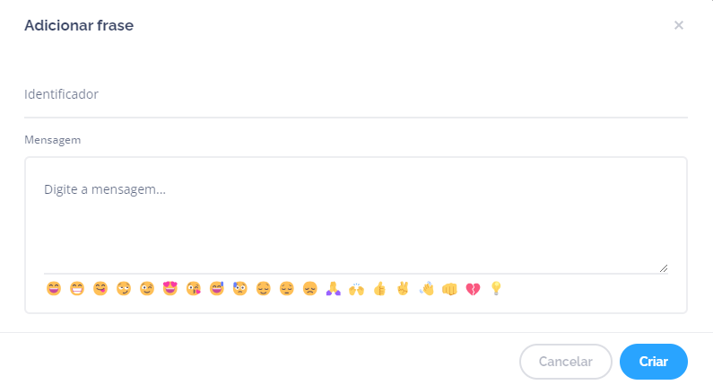 Mensagem: Texto que será enviado ao selecionar a frase.