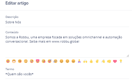 Ao criar uma nova base de conhecimento, você pode inserir artigos específicos contendo a informação a ser transmitida ao passo que elas forem acionadas ao longo da conversa: