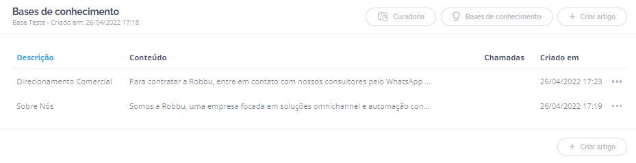 Ao finalizar, sua Base de Conhecimento terá uma visualização similar a esta:
