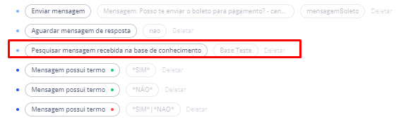 Caso seu negócio tenha perguntas frequentes, é possível criar uma Base de Conhecimento para que a IDR busque respostas antes de percorrer seu fluxo original.