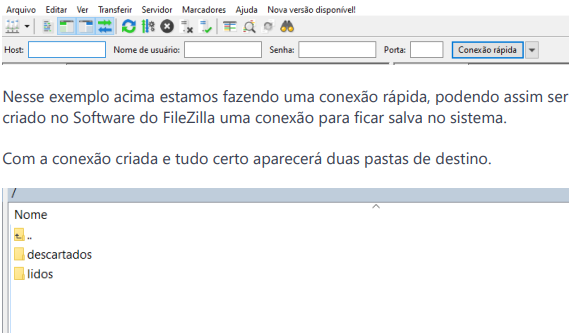 O processo é bem simples, sendo necessário inicialmente configurar no FileZilla os mesmos parâmetros do cadastro na Invenio.