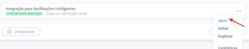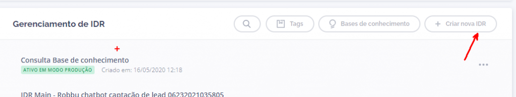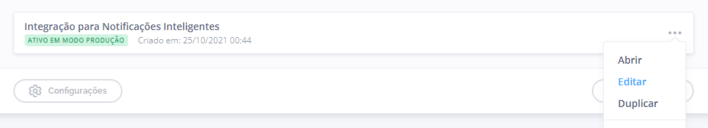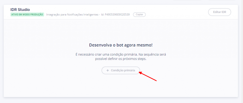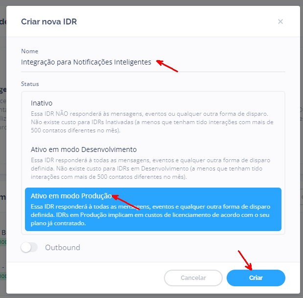 Informe o nome da sua integração (IDR), escolhe o status entre “Ativo em modo de Desenvolvimento” ou “Ativo em modo de Produção”. Clique em “Criar”.