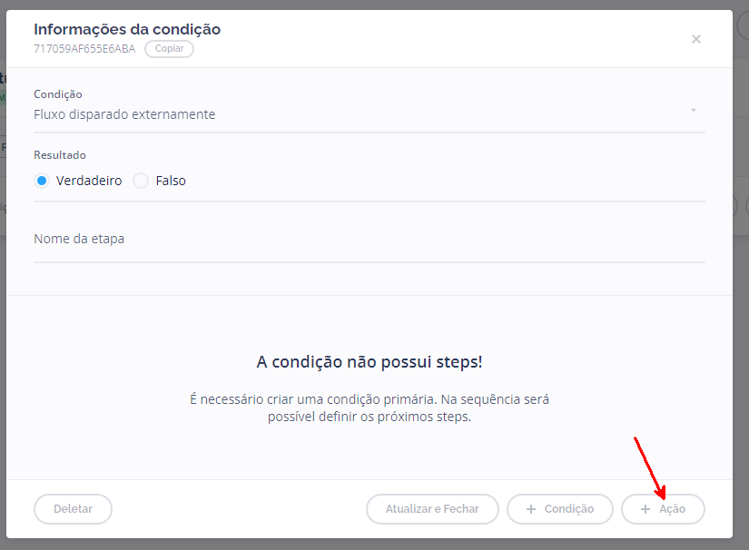 Clique na condição que acabamos de inserir, conforme imagem abaixo. 👇