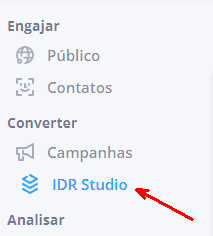 Para criar sua integração, acesse sua conta do Invenio Center e clique em “IDR Studio”: