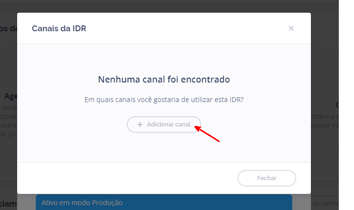 Na tela de canais da IDR, clique em “Adicionar canal”.