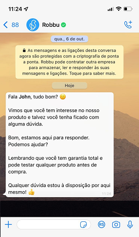 Você pode personalizar as mensagens, veja apenas um exemplo de recebimento de mensagem no WhatsApp:
