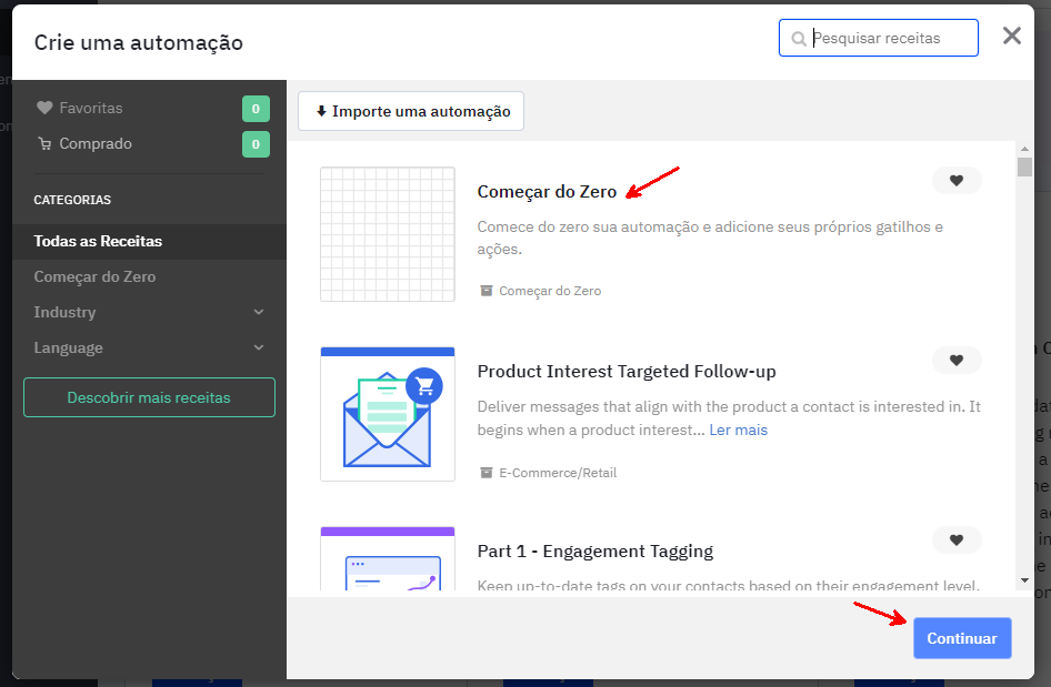 Clique na opção “Começar do Zero” e depois no botão “Continuar“.