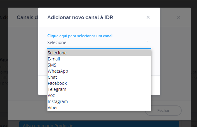Selecione quantos canais desejar entre os canais que possibilitam o envio de notificações ativas.