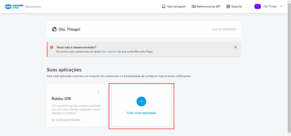 Primeiro, você precisar criar um aplicativo de acesso, clique no link https://www.mercadopago.com.br/developers/panel
