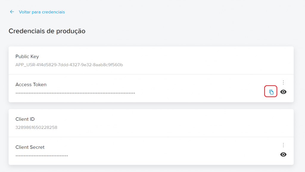 Perfeito, agora vamos copiar o seu ACCESS_TOKEN e manter ele salvo, iremos utilizá-lo na IDR Chatbot Studio para gerar os links de pagamento.