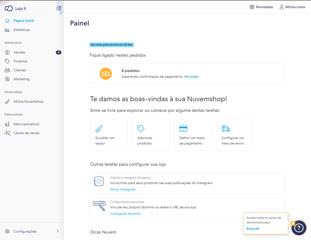 Realize o login na sua área administrativa do Nuvemshop em uma nova aba.