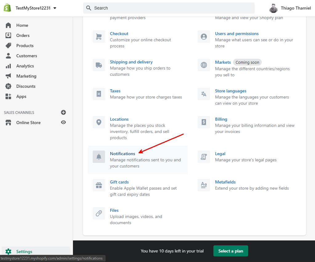 Então, você será redirecionado para a página de configuração; na página, selecione a opção Notificação: