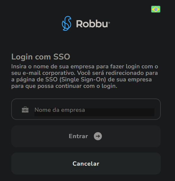 Após clicar na opção, basta informar o nome da sua empresa e você será direcionado para a página de autenticação gerenciada por ela.