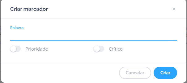 Ao clicar no botão adicionar marcador, você poderá definir a palavra ou frase e determinar se este marcador terá prioridade e/ou ser considerado crítico: