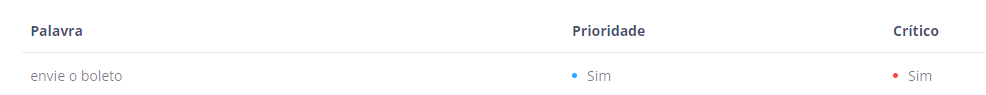 Quando o contato enviar uma mensagem que contenha com exatidão a frase “envie o boleto”, será definido os parâmetros deste marcador: prioridade aumentada e sinalizado como crítico.