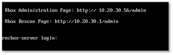 Após importar o Rbox® OVA em seu ambiente de virtualização declarado na sessão pré-requisitos, o usuário deverá verificar no console da máquina virtual os endereços para o primeiro acesso. Na primeira linha, teremos o IP dado pelo DHCP da rede e na segunda linha o endereço fixo para eventual necessidade de acesso emergencial. É importante destacar que o primeiro endereço deverá ser o utilizado em produção, pois ele se adequará de acordo com a classe de rede do cliente. Outro ponto importante é que a configuração inicial (para facilitar o primeiro acesso) está definida por DHCP e, mais tarde, o usuário deverá fixar um IP obrigatoriamente na sessão “Network Administration”, mais à frente detalhada. Preferencialmente, utilize o browser “Google Chrome” para acesso à ferramenta. Para administração, o usuário padrão será o operator com a senha @rboxopp. Para monitoria, o usuário padrão será o monitor com a senha @rboxmon .