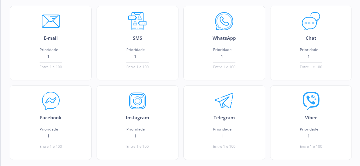 É possível atribuir um número de 1 a 100 para cada um destes canais, sendo que, quanto maior o número, maior sua prioridade na fila de atendimento.