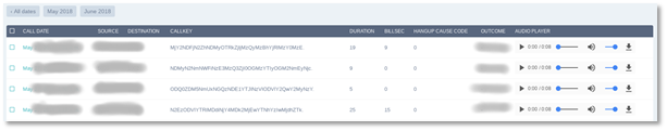 Esta funcionalidade exibe a listagem das gravações do Rbox®. Há uma zona para execução de filtros, além do player para a execução e download dos áudios.