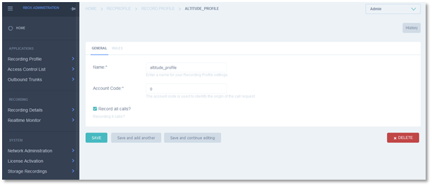 Em seguida, defina um nome para o perfil e um “Account Code”. O mesmo deverá ser tratado pelo gateway à frente pois, por definição, na função de “transit switch” o Rbox® não modificará qualquer parâmetro na composição do endereço de destino. O “Account Code” é um campo único e obrigatório que define as regras de encaminhamento de cada “Recording Profile”.