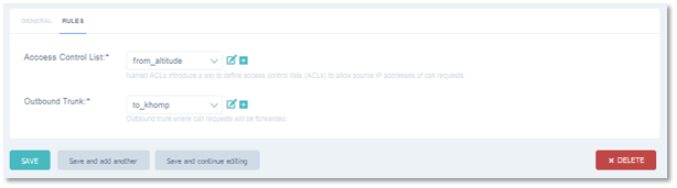 Na guia “Rules”, defina uma “Access Control List” que poderá conter quantos endereços IPs forem necessários e um “Outbound Trunk”.