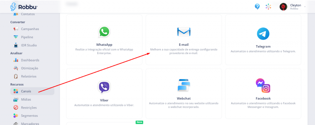 - No Invenio Center, grupo Recursos –> Menu Canais–>