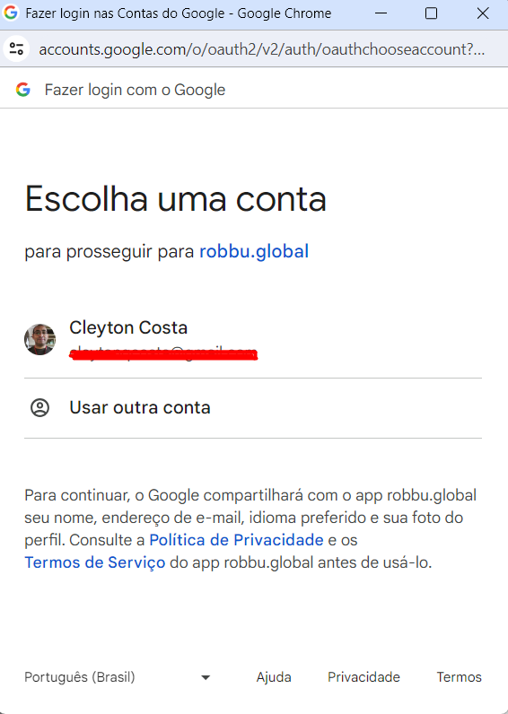 Irá aparecer a seguinte tela, escolha a conta para prosseguir com o acesso.