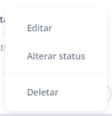 Após criado temos as opções de <Editar>, <Alterar status> e <Deletar>