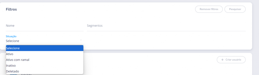 Confira as novidades na tela de lista de usuários! Agora, você pode realizar pesquisas mais precisas com os novos filtros disponíveis. Filtre usuários por status (ativos, inativos ou deletados), por aqueles com ramal, e ainda por segmentos vinculados. Esses novos filtros tornam a gestão de usuários mais ágil e eficiente!!